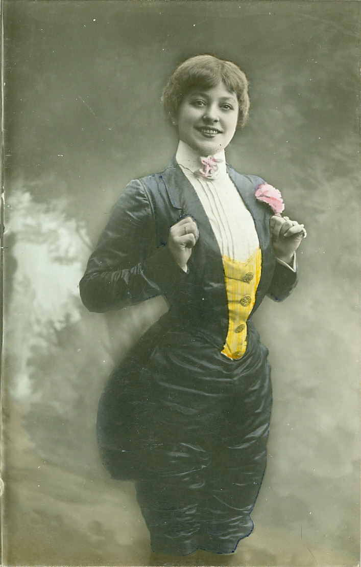FRENCH SEXY LGBT LADY-Hand Tinted-ART DECO VINTAGE ORIGINAL RPPC PHOTO POSTCARD