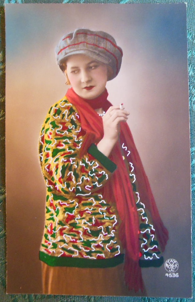 Chic Sexy Coquette with Cigarette-1930’s Art Deco Hand Tinted Post Card